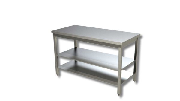 Lunghezza 1600 mm Profondità 400 mm Altezza 650 mm A GIORNO IN ACCIAO INOX AISI 430 o 304 Con ripiano intermedio regolabile Il prodotto viene venduto montato