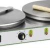 Crepiera elettrica doppia con due piastre in ghisa Ø35 cm indipendenti.