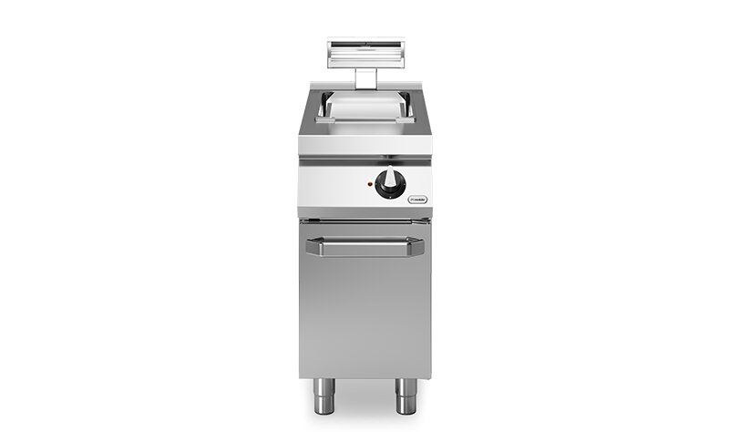 • Controllo trermostatico (60 - 200 °C) • Resistenze mobili per una facile pulizia • Valvola frontale di scarico dell’olio • Termostato di sicurezza per il surriscaldamento • Facile da pulire • Struttura in acciao inossidabile