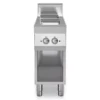 Cucina elettrica con piano realizzato in acciaio inox AISI 304 con spessore 10/10 mm e invaso per la raccolta dei liquidi. Piastre quadre in ghisa cm 22×22.