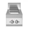 Cucina elettrica con piano realizzato in acciaio inox AISI 304 con spessore 10/10 mm e invaso per la raccolta dei liquidi. Piastre quadre in ghisa cm 22×22.