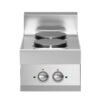 Cucina elettrica con piano realizzato in acciaio inox AISI 304 con spessore 10/10 mm e invaso per la raccolta dei liquidi. Piastre tonde in ghisa cm Ø 22.