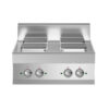 Cucina elettrica con piano realizzato in acciaio inox AISI 304 con spessore 10/10 mm e invaso per la raccolta dei liquidi. Piastre quadre in ghisa cm 22×22.