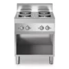 Cucina elettrica con piano realizzato in acciaio inox AISI 304 con spessore 10/10 mm e invaso per la raccolta dei liquidi. Piastre tonde in ghisa cm Ø 22.