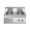 Cucina elettrica con piano realizzato in acciaio inox AISI 304 con spessore 10/10 mm e invaso per la raccolta dei liquidi. Piastre tonde in ghisa cm Ø 22.