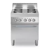 Cucina elettrica con piano realizzato in acciaio inox AISI 304 con spessore 10/10 mm e invaso per la raccolta dei liquidi. Piastre tonde in ghisa cm Ø 22.
