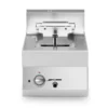 Friggitrice professionale elettrica con piano di lavoro e vasca in acciaio inox AISI 304 spessore 10/10 mm. Resistenze corazzate ribaltabili per una miglior pulizia.
