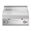 Fry top professionali con piastra rivestita in cromo duro lucidato a specchio inclinata per favorire il deflusso dei liquidi. Regolazione riscaldamento con rubinetto di sicurezza dotato di valvola termostata.