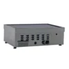 Piastra fry-top da banco ad uso professionale a gas, in acciaio inox, valvola termostatica; canalina perimetrale per scarico grassi oli e residui di cottura; cassetto di recupero residui di cottura;