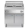 Griglia a pietra lavica con griglia in acciaio inox con cassetto raccolta liquidi e alzatine paraspruzzi su 3 lati.