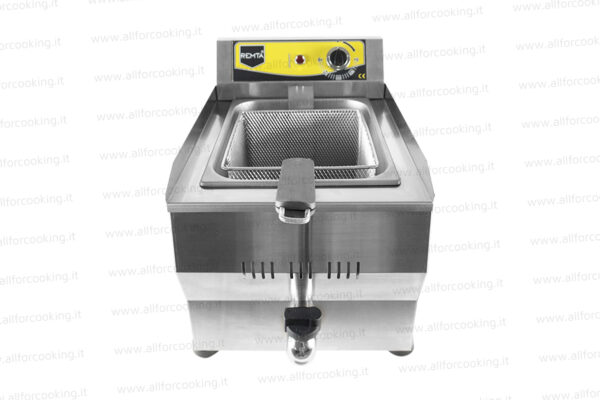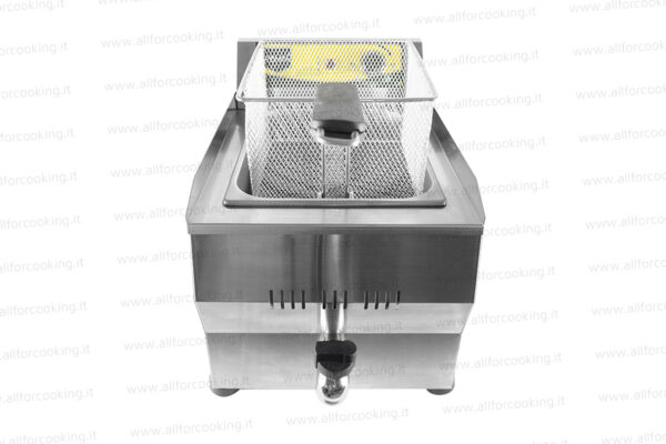 La nostra friggitrice elettrica con rubinetto è costituita da una robusta struttura in acciaio inox con piano di lavoro e vasca stampata in acciaio inox spessore 15/10. Pensata per un uso professionale, per ristornati, bar, paninoteche, truck food, garantisce la possibilità di preparare una grande quantità di prodotti occupando poco spazio. Dotata di vasca con capienza 10 lt, cestello sempre in acciaio inox.