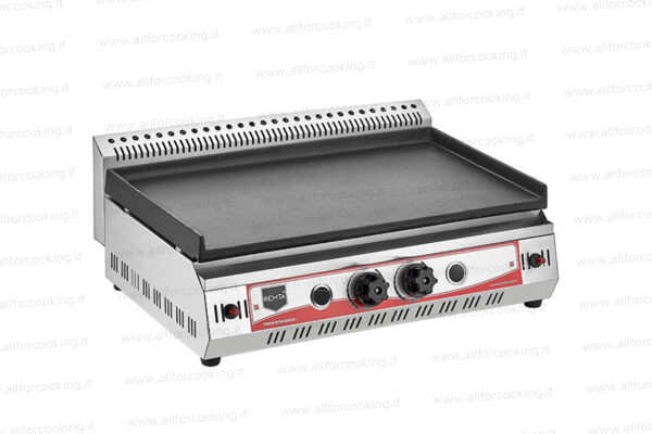 Il fry top a gas in ghisa è un apparecchio da banco pensato per soddisfare le esigenze della moderna ristorazione. Caratterizzato da un utilizzo semplice ed intuitivo, consente di ottenere un’ottima cottura appoggiando direttamente i cibi sulla piastra sia che si tratti di carne (hamburger, bistecche), pesce o verdure, i quali si presenteranno con una cottura decisa, senza la minima alterazione del gusto.