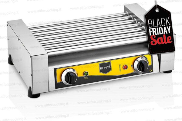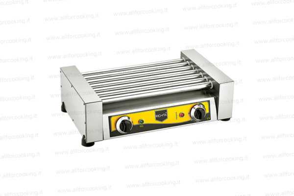 è un macchinario professionale in grado di cuocere in modo rapido e uniforme würstel e salsicce che acquistano così il sapore e la colorazione tipica della cottura alla griglia senza la necessità di rigirare i prodotti manualmente.