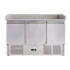 Banchi pizza refrigerati statici ForColdBanco pizza refrigerato con rifrigerazione statica. Struttura in acciaio inox AISI 201. Controllo temperatura elettronico con termostato digitale, con evaporazione automatica dell’acqua di condensa.Specifiche TecnicheAcciaio inox AISI 201Gas refrigerante R600aCollaudo °C/RH +35/50%Assorbimento W 435StaticoAlimentazione 230V/50HzN. 3 porte refrigerate Peso Kg 198Dimensioni interne mm 1293x515x500Dotazione di serie: n.3 coppie guide e 3 griglieClasse energetica E