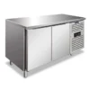 Tavoli freezerTavolo freezer due ante ventilato. Superficie esterna ed interna in acciaio inox AISI 304.Specifiche TecnicheTermostato elettronicoRumorosità 42 dBSpessore isolamento 60 mmSbrinamento automatico con resistenza elettrica2 mensole mm 335×430 + 2 mensole mm 390x405Chiusura ammortizzata4 piediVoltaggio V 220-240Frequenza Hz 50Refrigerante R290Assorbimento W 470KwH/24H 6,572Classe energetica DPeso 95 Kg